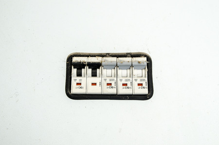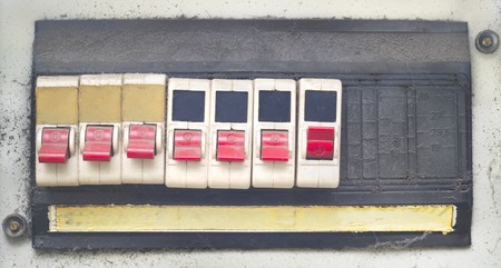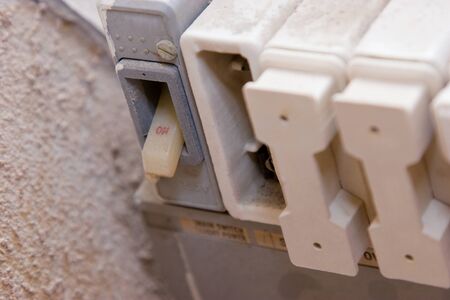 switch electrical safety circuit breaker box, damaged by the sun, in poor conditions to function.