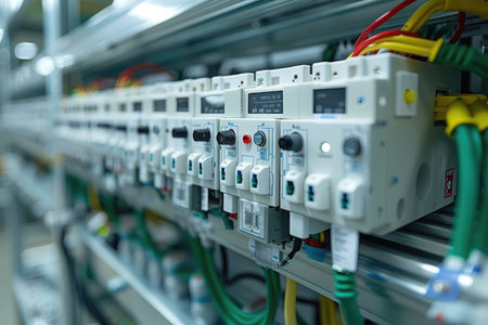 Captivating Macro View: Busbars and Circuit Breakers in Electrical Switchgear, Emphasizing Safety and Efficiency