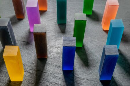 Wooden small blocks on the background. Background for desktop. Office style.Agile and scrum. Team players.Social life.In the office.Equality and diversity