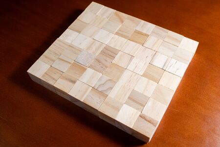 Wooden cubes making a square on a brown background