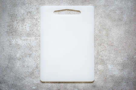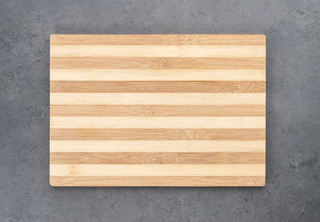 Empty Cutting board on a concrete background. Top view with copy space