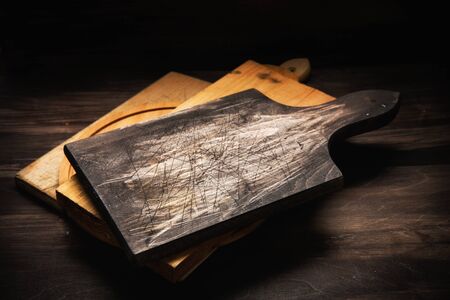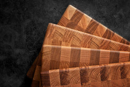 Set of several cutting boards on a dark background