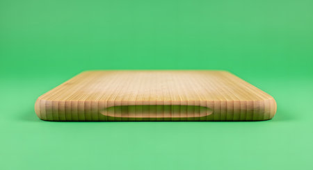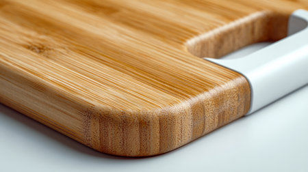 A polished wooden surface with gentle curves and a sleek white accent, positioned on a spotless background, ready for culinary creations and meal prep.