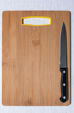 Cutting board and a knife on the table