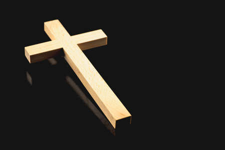 Wooden Cross on Black Background