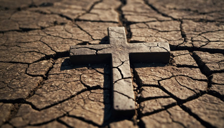 Solemn Christian Cross amidst Ashes Symbolizing Faith and Reflection