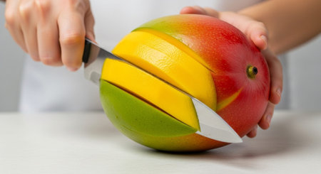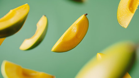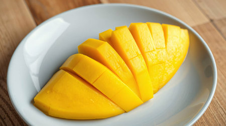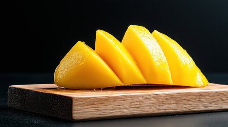 Vivid mango slices arranged beautifully, capturing seasonal essence and freshness in each bite.