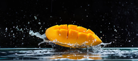 Energizing Fruit Splash, Ripe Mango in Refreshing Splash