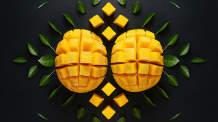 Two pieces of mangoes arranged in a geometric pattern, AI