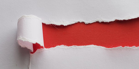 Ripped paper concept. White on red. Copy space.