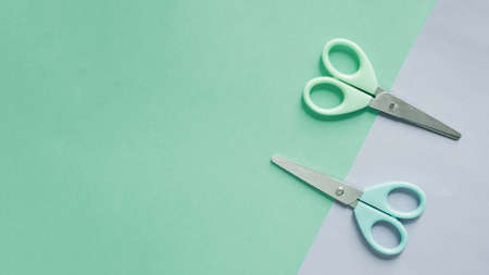 overhead view two scissors dual colorful background (1). Resolution and high quality beautiful photo