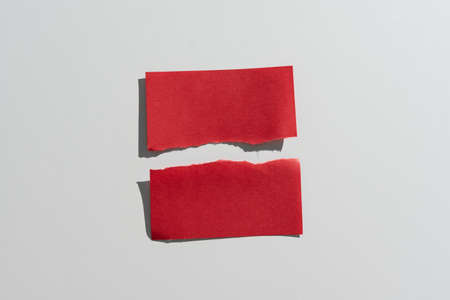 Ripped Sticky Note With Important Messages Presented On Desk. Teared Apart Memo With Two Different Crutial Informations. Recent Announcements Presented.