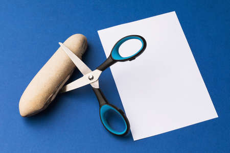 on a light background a hand holds a pair of scissors cuts a piece of paper an inscription is impossible