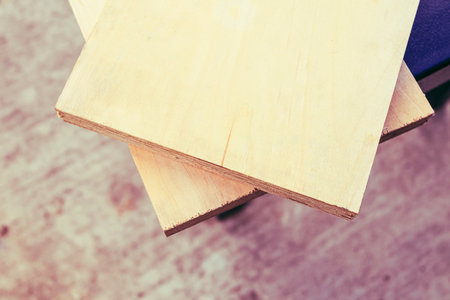 Wooden boards resting on a textured surface in a well-lit workspace during daytime