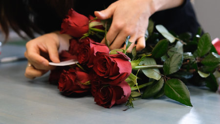 An exquisite bouquet of red roses highlights their loveliness and texture, ideal for romantic events, special gifts, or artistic photography projects.