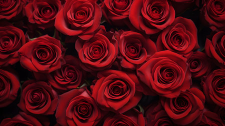 Immerse yourself in the beauty of natural fresh red roses. This pattern wallpaper highlights a vibrant arrangement of red roses captured from a top view, offering a perfect backdrop for decor,