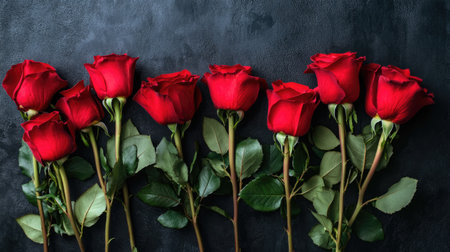 A stunning arrangement of fresh red roses against a soft gray background. Perfect for themes of love, romance, and elegance in any design.