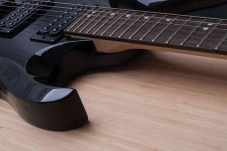 black guitar,focus on a foreground