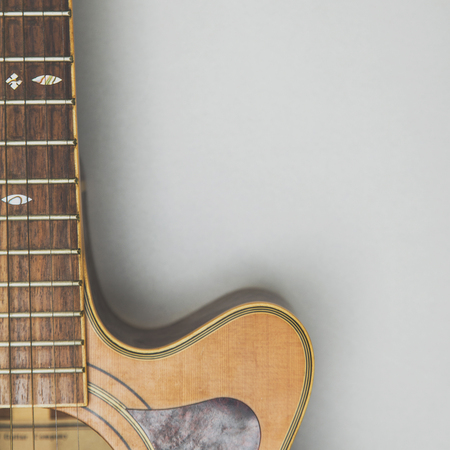 Acoustic guitar on isolated background, musical instruments.