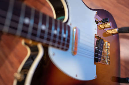 Close up of an Electric Guitar with a sunburst paint job