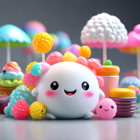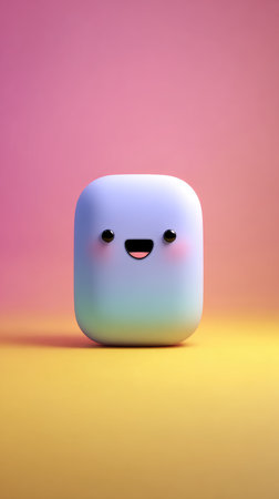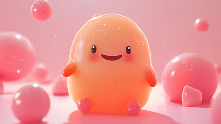 A cute cartoon character with a happy expression on a colorful background. The image is well-lit and the colors are vibrant.