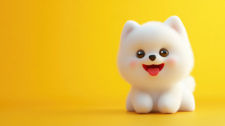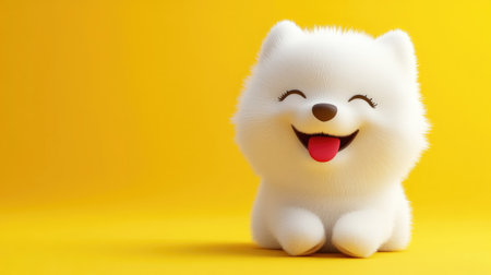 This adorable fluffy white dog toy sits against a vibrant yellow background, radiating joy and playfulness. Perfect for gifts or decorations.