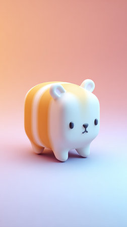 A charming cartoon animal figure set against a gentle, pastel-colored backdrop.