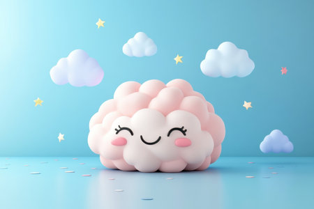 Adorable cartoon cloud character with a cheerful expression, set against a soothing blue background. Perfect for designs that evoke joy and imagination.