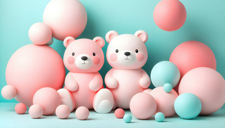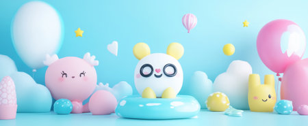 This vibrant scene features cute cartoon characters in a playful setting. The colorful panda, soft balloons, and cheerful elements evoke joy and creativity, perfect for kids decor or playful
