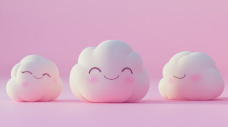 This charming illustration features cute cartoon clouds with joyful expressions against a soft pink background, creating a delightful and whimsical atmosphere suitable for various creative projects.