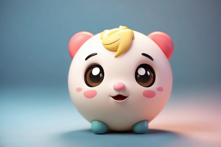 Cute Kawaii 3D Animal Character Design on Simple Backdrop
