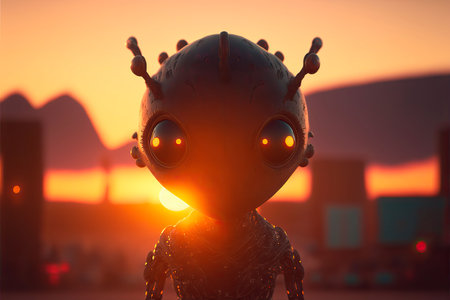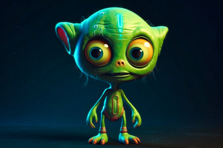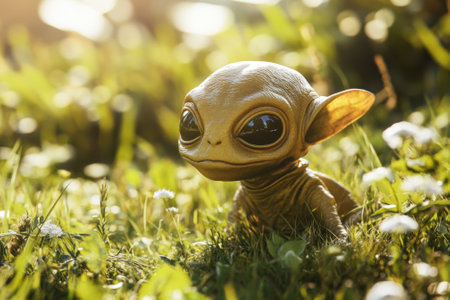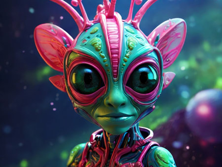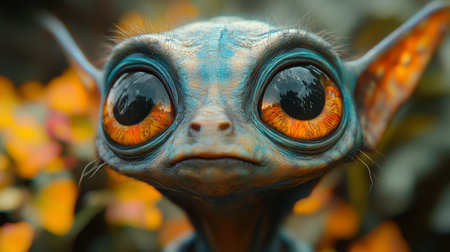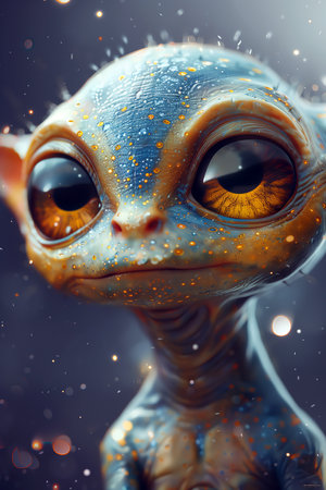 Cute alien creature with big eyes and colorful bokeh background, fantasy art. Imagination and creativity concept