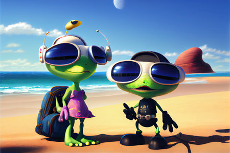 computer-generated image of space alien tourists exploring the United States. These extraterrestrials are legal aliens, not illegal aliens, and they're just sightseeing and trave