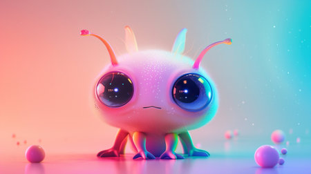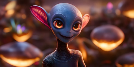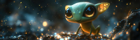 A charming digital rendering of an adorable alien creature with glowing eyes The image features a whimsical and surreal aesthetic with a captivating magical atmosphere Perfect for fantasy sci-fi projects