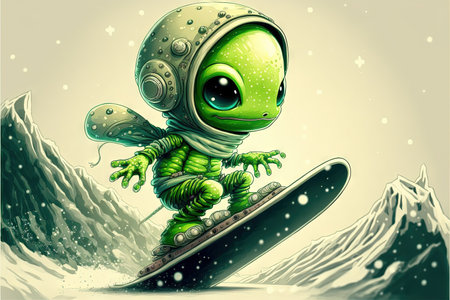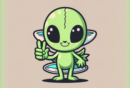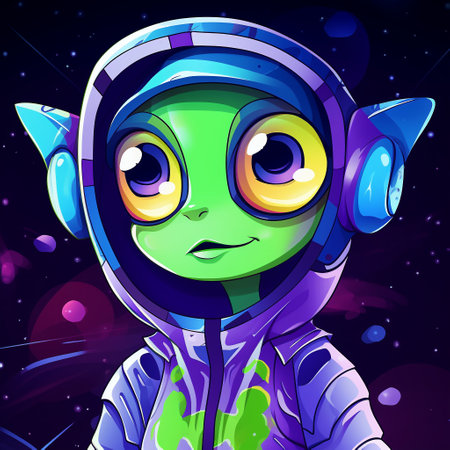 An AI-generated illustration of a smiling alien wearing a hoodie