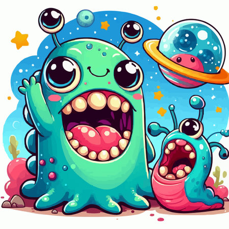 Cute cartoon monster and alien. Vector illustration of a funny alien.