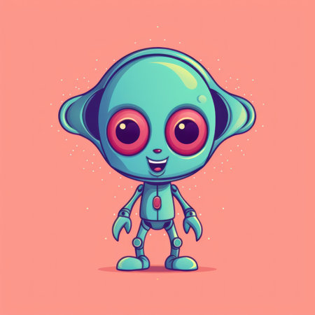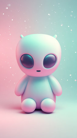 Adorable alien toy in a soft pastel color palette, perfect for childrens designs and space themes.
