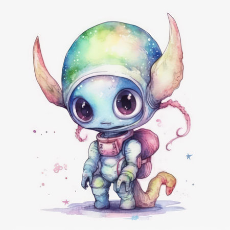 Cute cartoon alien on white background. Watercolor hand drawn illustration