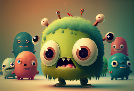 An extensive assortment of vibrant cartoon monsters, each with distinct characteristics, created by kids using pencils or markers, postcards, prints, and apparel