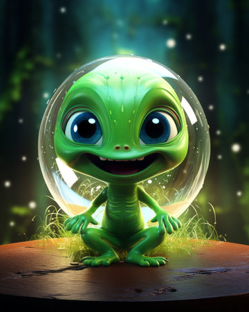 3d illustration of a green alien in a glass ball