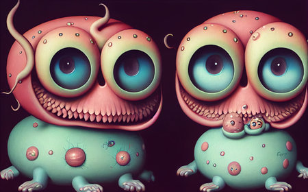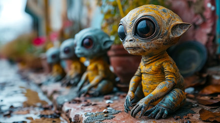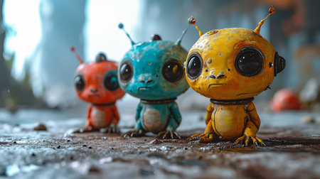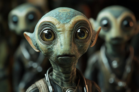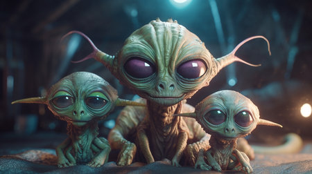 A group of alien creatures with big eyes and a black eye.generative ai