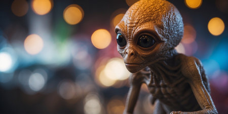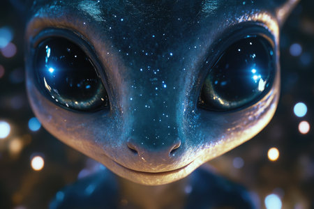 Cute alien creature with big eyes and colorful bokeh background, fantasy art. Imagination and creativity concept