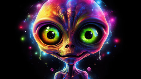 cute futuristic alien glowing in neon colors illustration