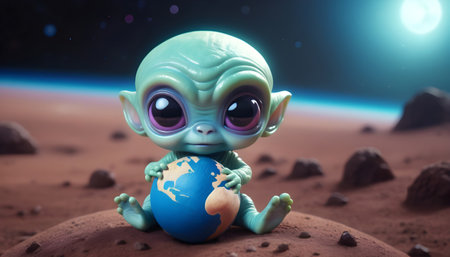 Tiny space creature figurine, both charming and unsettling. AI generated