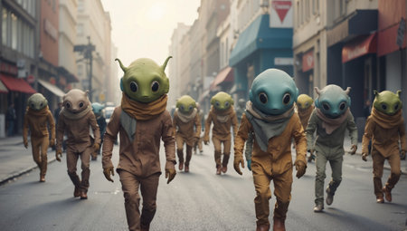 AI Generated. Extraterrestrial Adventure Alien Explores Earthly Delights