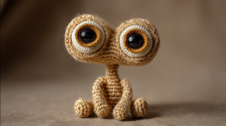 This adorable handcrafted crochet alien toy features large, expressive eyes. Its unique design and soft texture make it a perfect gift or playful decor.