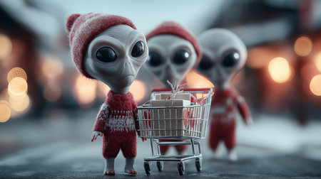 Doll with shopping cart on the street. Christmas and New Year concept.