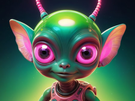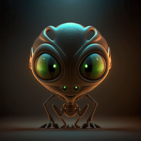 A cartoon alien with big eyes. Generative AI image.
