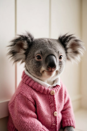 AI Generated. Adorable Koala in a Pink Knitted Sweater