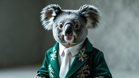 AI Generated. there is a koala in a green robe and a white tie
